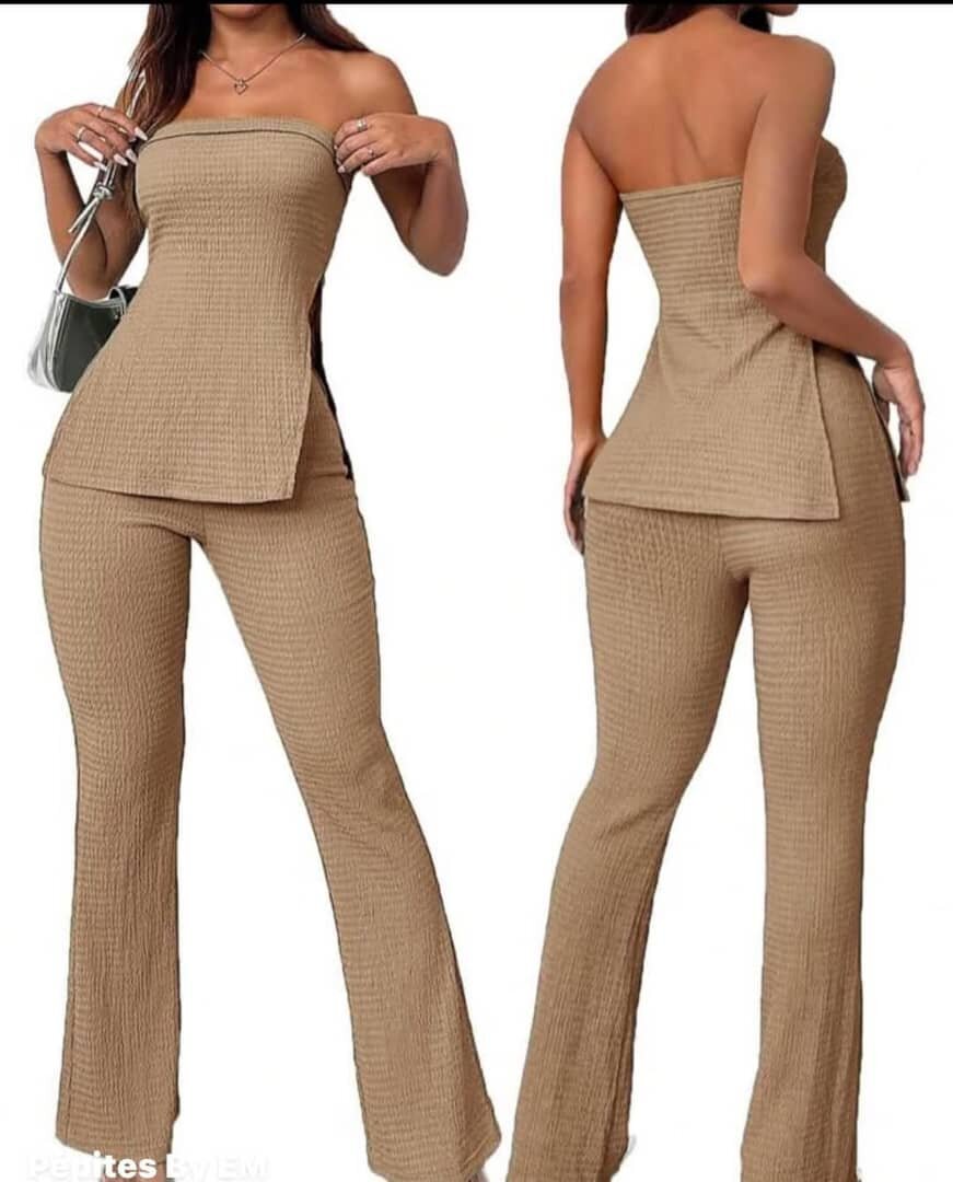 Optez pour ce somptueux ensemble deux pièces pour femme, idéal pour un look à la fois élégant et décontracté. Avec son haut épaules nues et ses pantalons à la coupe flatteuse, il offre confort et style. Parfait pour une sortie entre amis ou une soirée estivale.