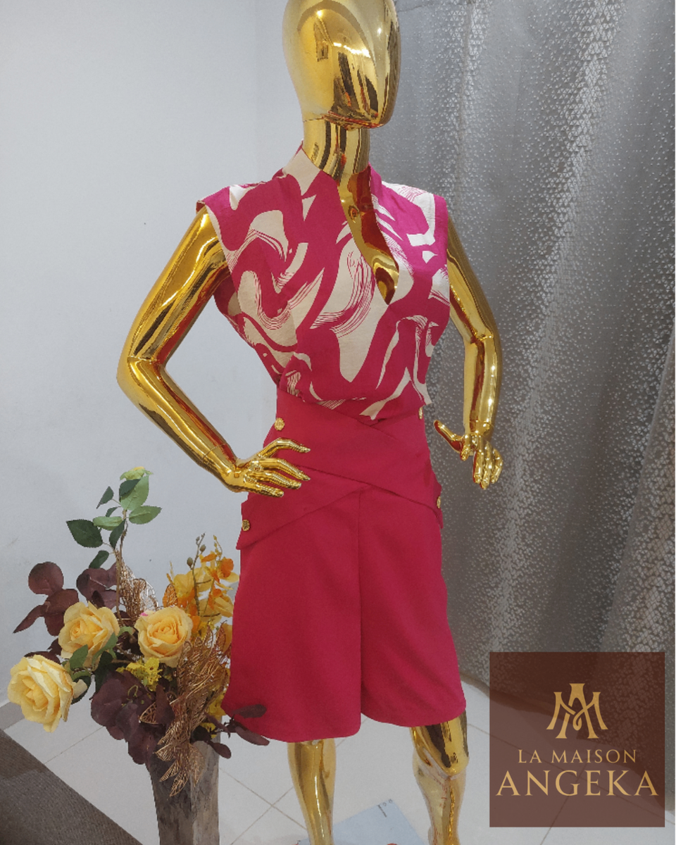 Découvrez cet ensemble Culotte Akan La Maison Angeka, parfait pour les journées ensoleillées. Comprend un haut imprimé coton moderne et un short élégant. Idéal pour un style chic et décontracté. Disponible en plusieurs couleurs tendance. Parfait pour vos sorties.