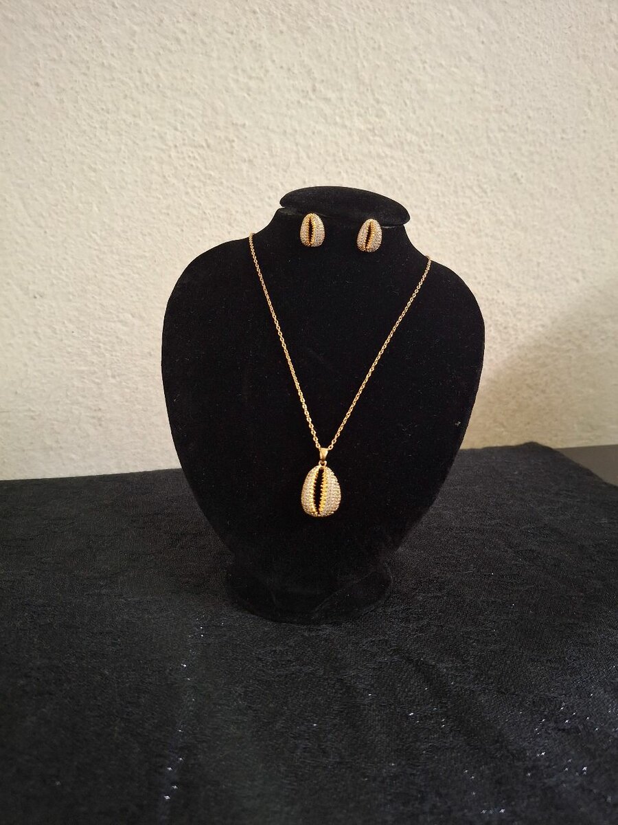 Découvrez cet ensemble raffiné comprenant un collier et des boucles d'oreilles assorties en or plaqué.Parfait pour les soirées ou comme cadeau spécial, ce bijou en or ajoute une touche d'élégance à toute tenue. Idéal pour compléter votre look avec sophistication.