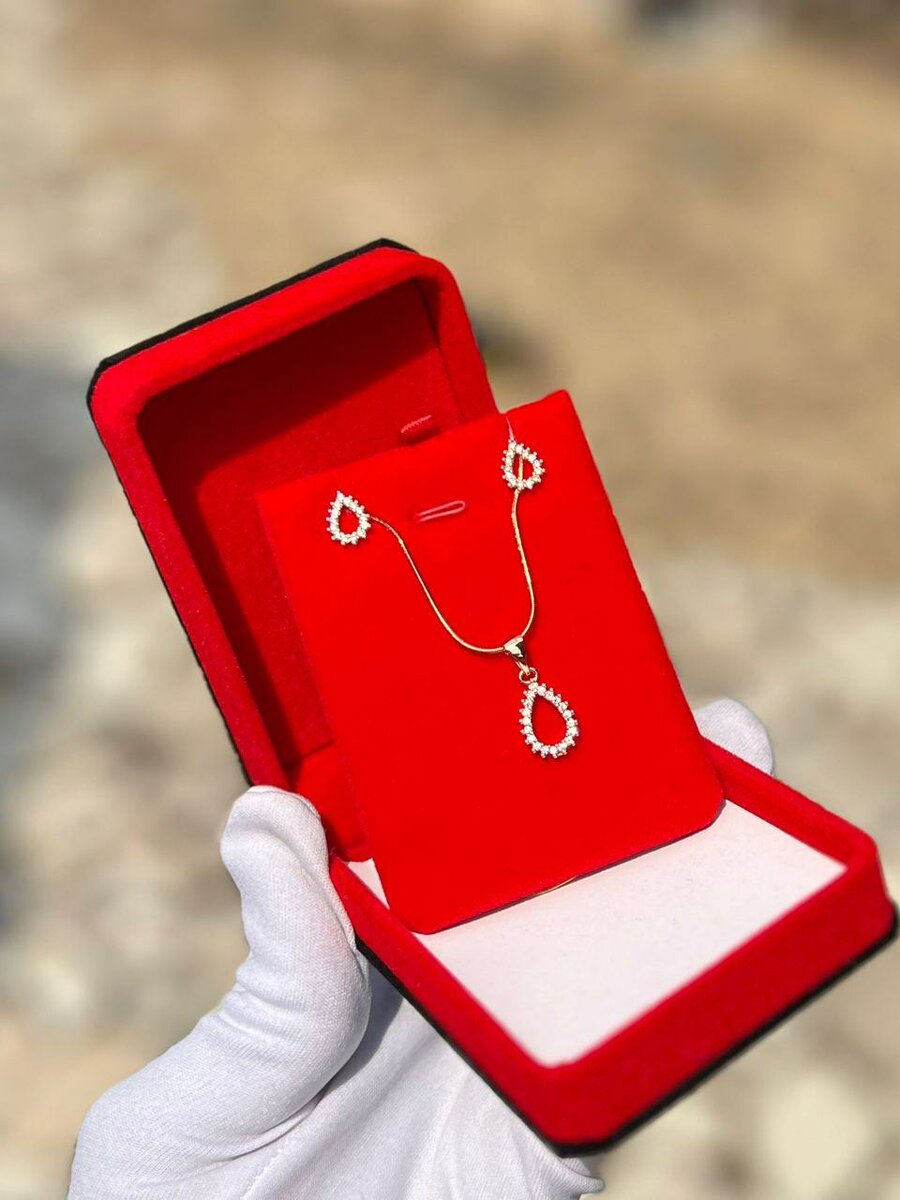 Découvrez cet ensemble élégant comprenant un collier et des boucles d'oreilles en or, parfait pour compléter votre tenue. Un cadeau idéal pour une occasion spéciale.