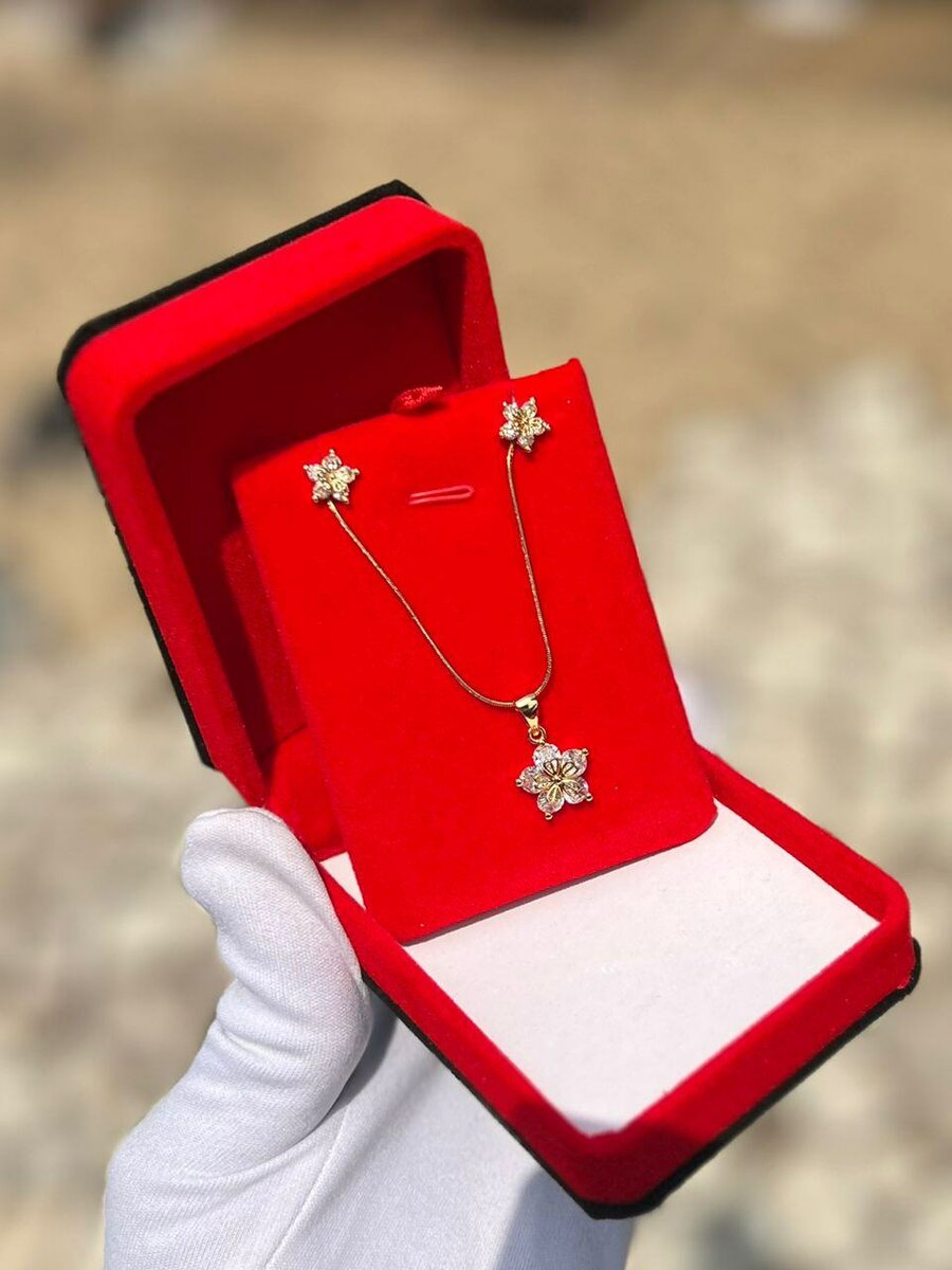 Sublimez votre style avec cet ensemble élégant comprenant un collier et des boucles d'oreilles en plaqué or. Parfait pour un usage quotidien ou pour une occasion spéciale, cet ensemble ajoutera une touche de sophistication à votre tenue.