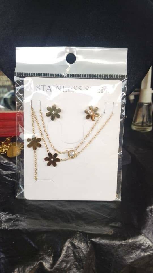 Découvrez cet ensemble élégant de collier et boucles d'oreilles en forme de fleur, réalisé en acier inoxydable de qualité. Parfait pour un usage quotidien ou comme accessoire spécial, cet ensemble ajoutera une touche de sophistication à votre tenue.