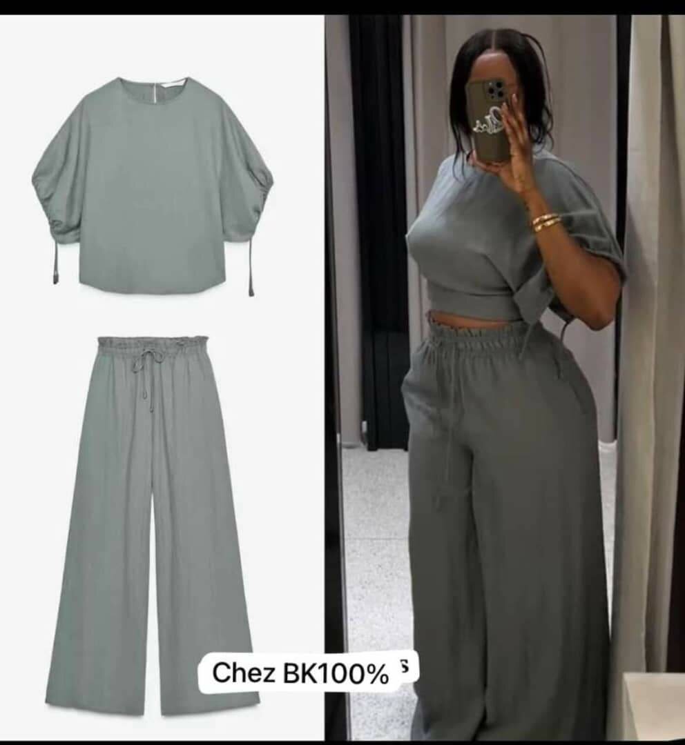 Optez pour cet ensemble tendance et confortable pour les moments décontractés. Composé d'un haut à manches amples et d'un pantalon à taille élastique, il offre style et aisance. Idéal pour un look chic et relax.