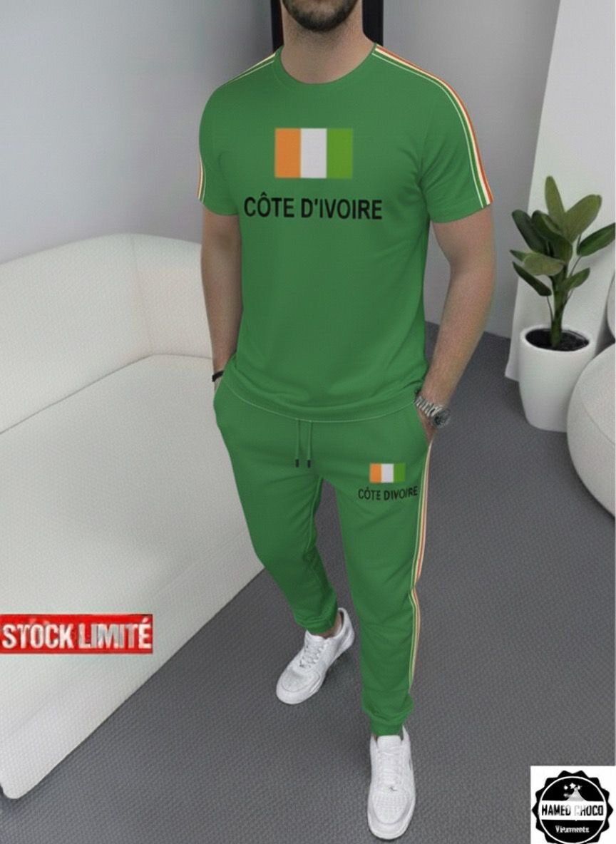 Montrez votre soutien avec cet ensemble sportif Côte d'Ivoire. Fabriqué en matériaux confortables, idéal pour le sport ou les loisirs. Parfait pour les fans de football.