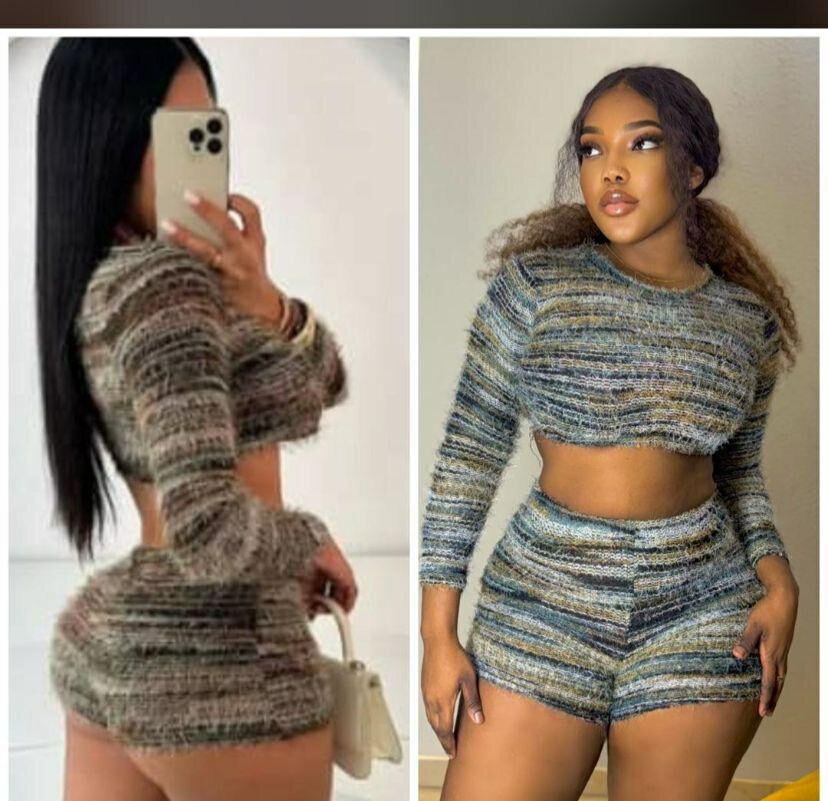 Soyez à la mode avec cet ensemble court en maille doux et confortable. Idéal pour les journées décontractées ou pour des soirées entre amis. Fabriqué avec des matières de qualité pour un look moderne et élégant. Disponible en plusieurs tailles.
