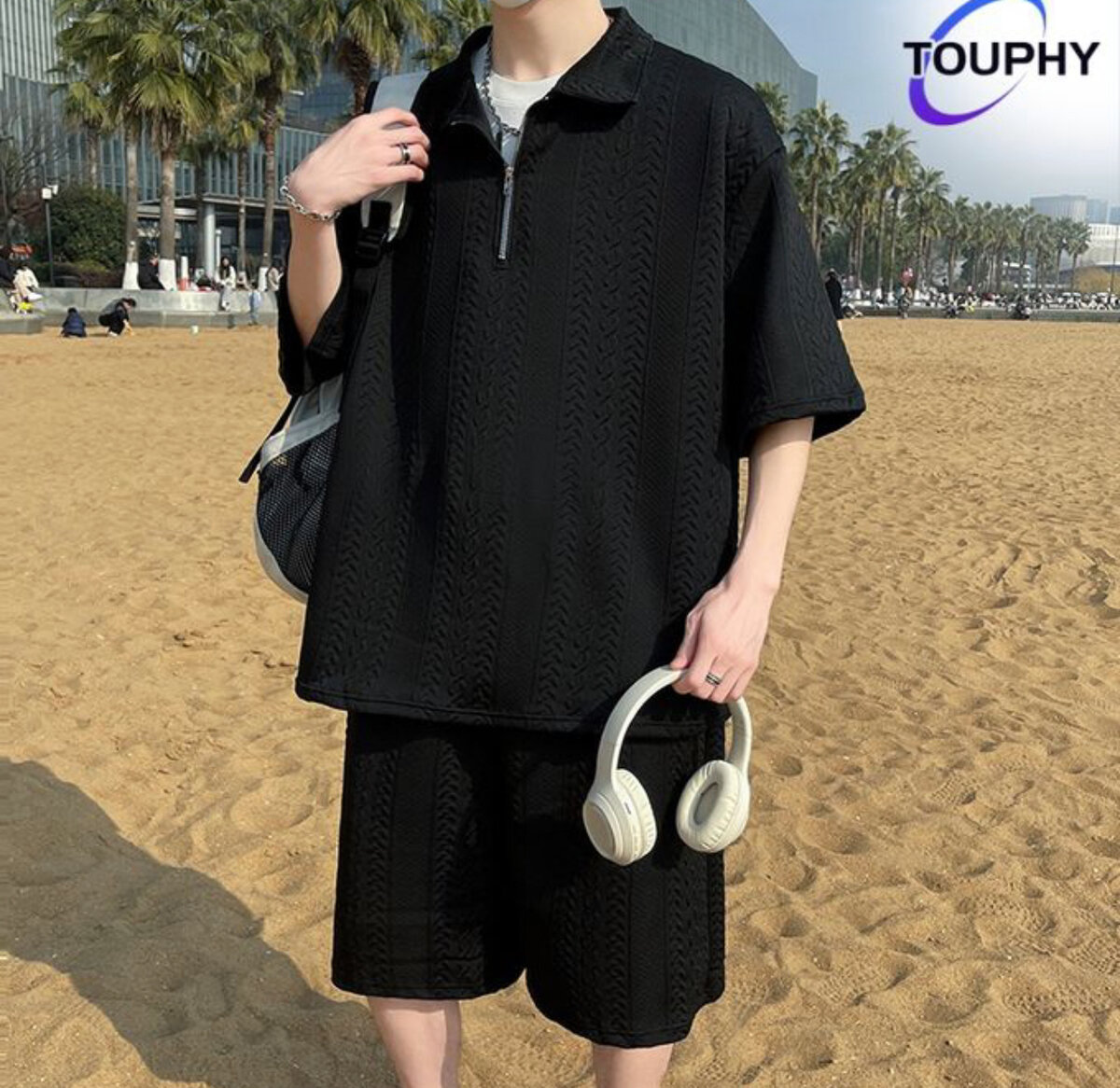 Optez pour cet ensemble décontracté noir avec fermeture éclair. Confortable et tendance, il est idéal pour une journée à la plage ou une sortie décontractée. Fabriqué en matériaux doux, il assure un confort optimal. La tenue parfaite pour un look moderne et stylé.