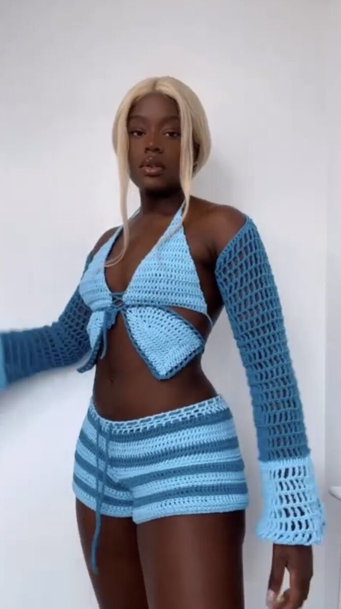 Cet ensemble crochet bleu est l'incarnation de l'élégance et du confort. Incluant un haut stylé et un short coordonné, il est parfait pour une journée estivale ou une escapade à la plage. Fabriqué avec soin, il offre une touche artisanale unique qui attire tous les regards. Idéal pour les fashionistas en quête de style distinctif.