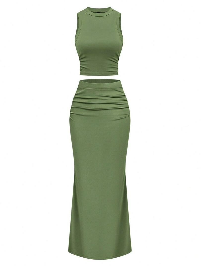 Élégant ensemble crop top et jupe longue, idéal pour l'été. Confectionné en tissu doux et extensible, il offre confort et style. Disponibles en vert et rose, ces tenues sont parfaites pour une sortie décontractée ou une occasion spéciale. Soyez tendance et à l'aise toute la journée!