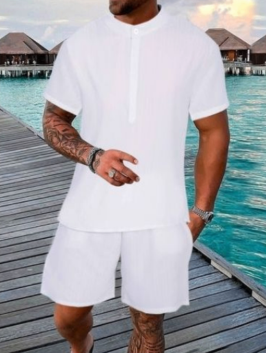 Optez pour cet ensemble d'été blanc, idéal pour des journées ensoleillées. Fabriqué avec des matériaux légers et respirants pour un confort optimal. Parfait pour une promenade ou une sortie décontractée. Restez élégant et à l'aise toute la journée.