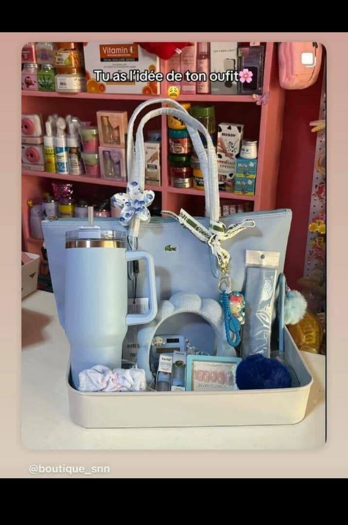 Découvrez cet ensemble élégant d'accessoires bleus, idéal pour compléter votre tenue. Comprenant un sac à main chic, une tasse isotherme pratique, et divers accessoires tendance, ce lot est parfait pour les sorties ou le quotidien. Style et utilité réunis !