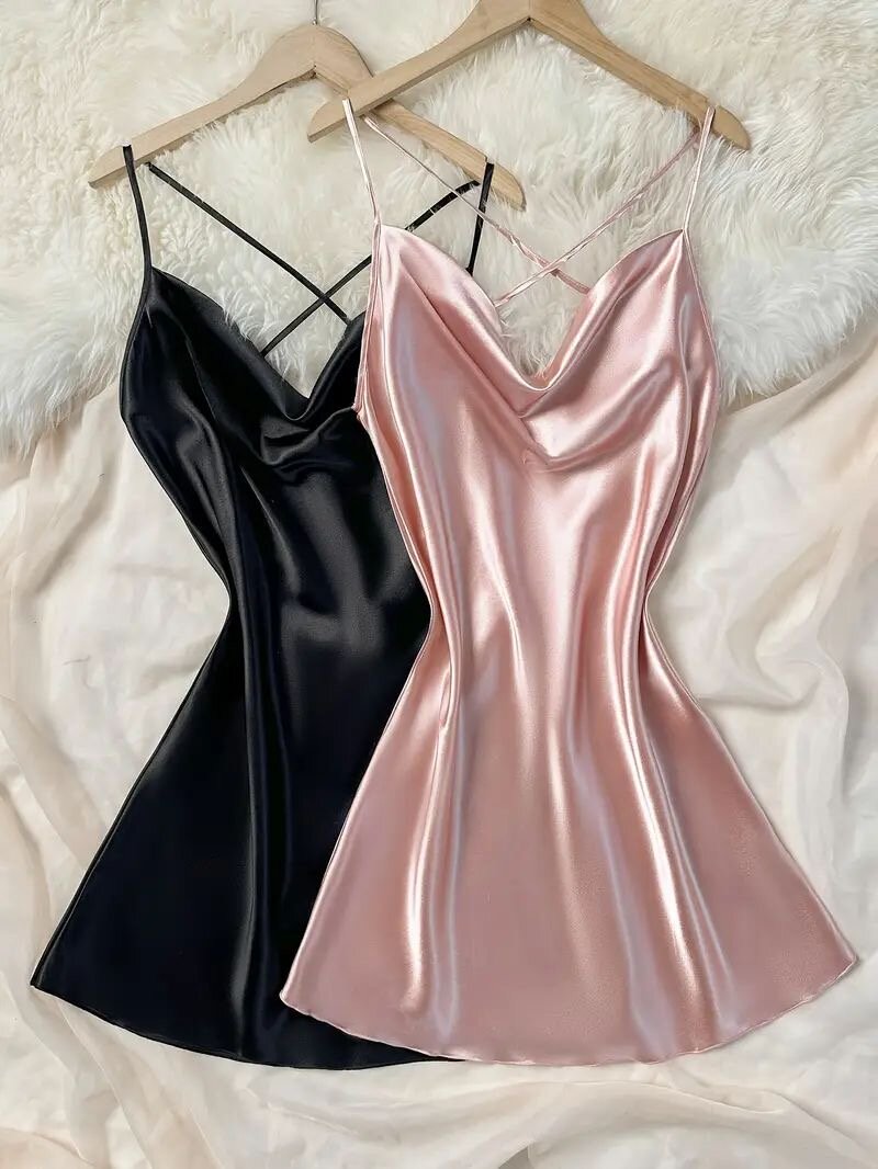 Ensemble de 2 robes de nuit en satin pour femmes, confortable et élégant. Conçu pour des occasions spéciales ou pour dormir avec style. Matériau doux et brillant.