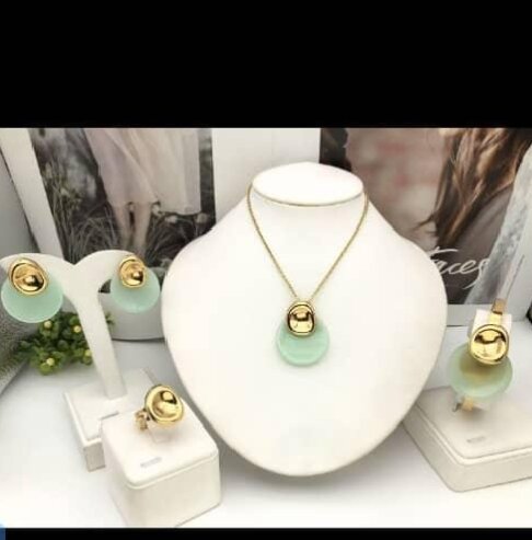 Découvrez cet ensemble de bijoux élégant, parfait pour compléter votre tenue. Inclut un collier et des boucles d'oreilles avec des accents dorés et verts, idéal pour ajouter une touche sophistiquée à votre look. Convient pour des occasions spéciales ou un usage quotidien. Faites ressortir votre style avec ce design unique et raffiné.