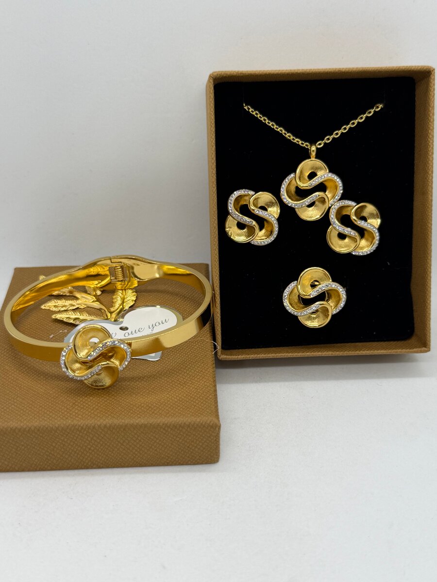 Découvrez cet ensemble de bijoux élégant, comprenant un collier et un bracelet en plaqué or ornés de zircon. Parfait pour les occasions spéciales ou pour ajouter une touche de sophistication à votre tenue quotidienne.