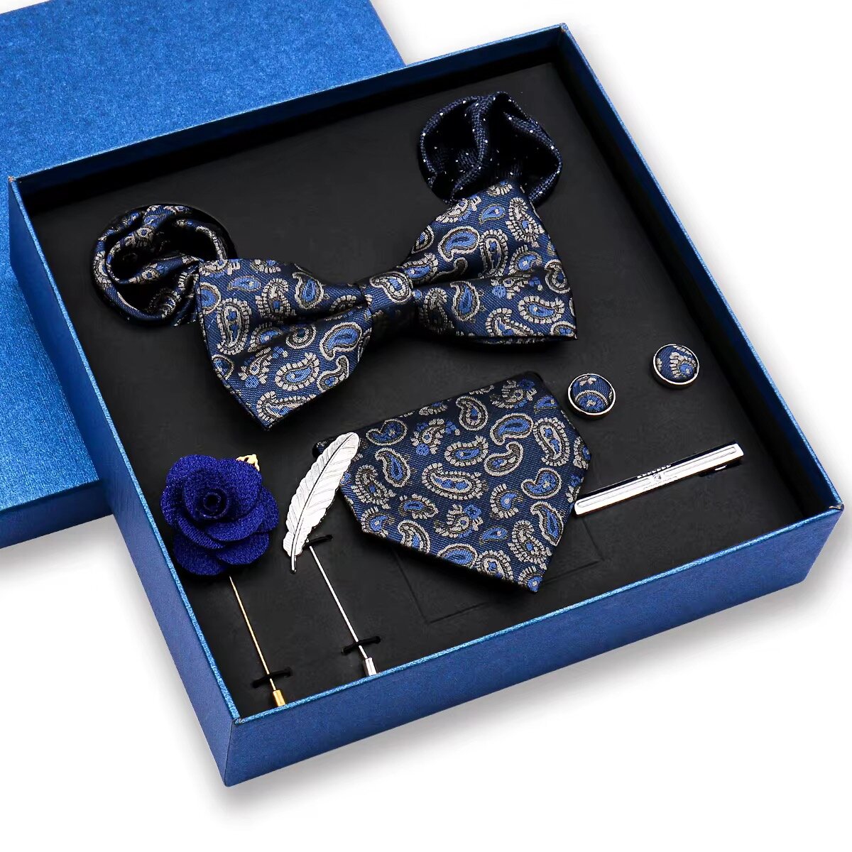 Ensemble de cravates pour hommes, noeud papillons en paillet, cravate, comprend 8 pièces, pince à cravate,bouton de manchette, broche, pochette de costume pour fête