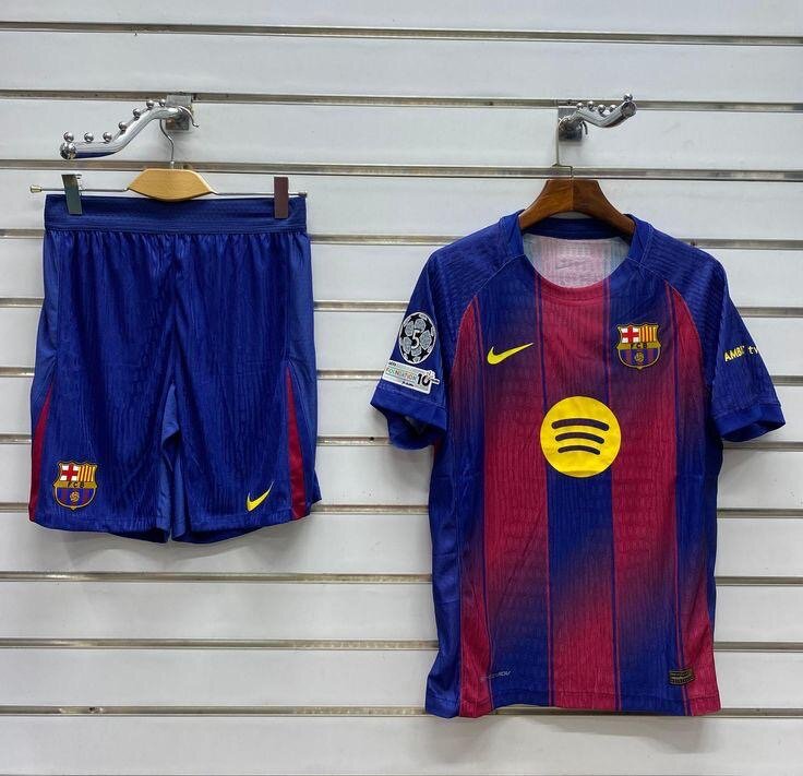 Portez votre passion avec cet ensemble de football de Barcelone. Fabriqué en tissu respirant, parfait pour le sport ou les loisirs. Affichez les couleurs de votre équipe favorite lors des matchs ou à l'entraînement. Un choix idéal pour les supporters invétérés.