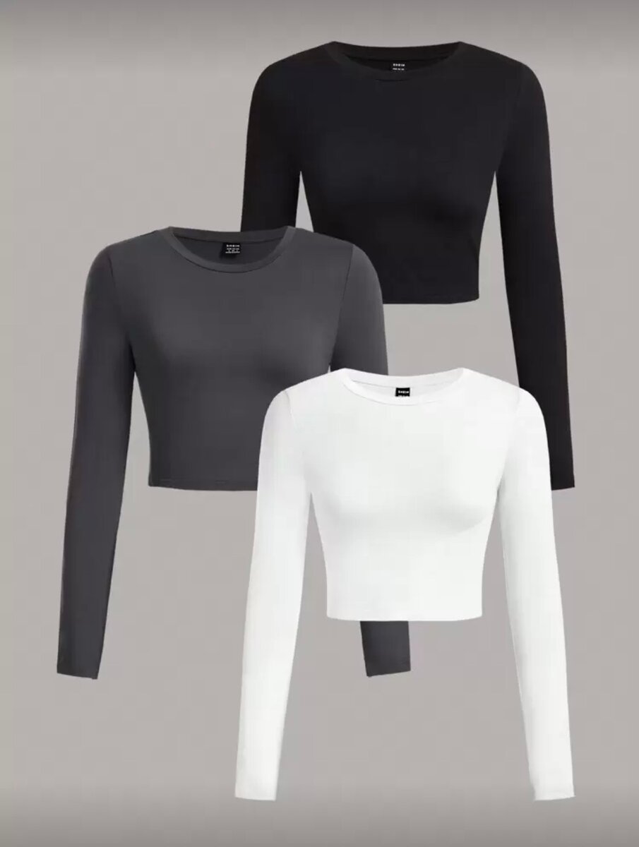 Découvrez notre ensemble de hauts courts à manches longues, idéal pour un style casual et moderne. Confectionnés dans un tissu doux et extensible, ces tops offrent confort et élégance, parfaits pour toutes vos sorties. Associez-les facilement avec un jean ou une jupe pour un look tendance.
