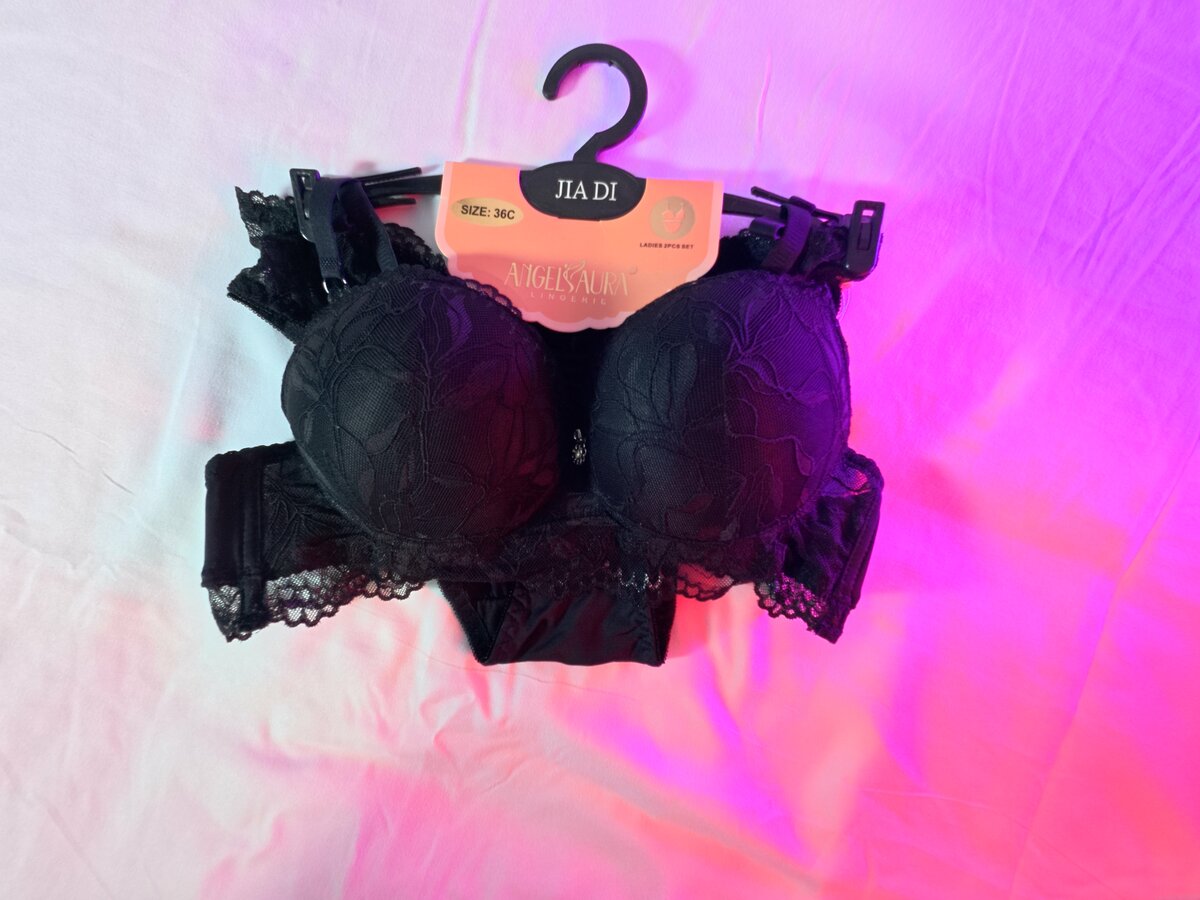 Cet ensemble de lingerie en dentelle noire offre confort et élégance. Avec ses motifs délicats et sa coupe ajustée, il est parfait pour les occasions spéciales ou le quotidien. Fabriqué avec des matériaux de qualité, il assure un maintien optimal. Idéal pour se sentir confiante et séduisante.