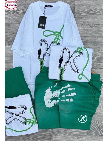 Découvrez cet ensemble moderne et décontracté comprenant un t-shirt ample, un short en jean stylé sans les baskets tendance. 15000f