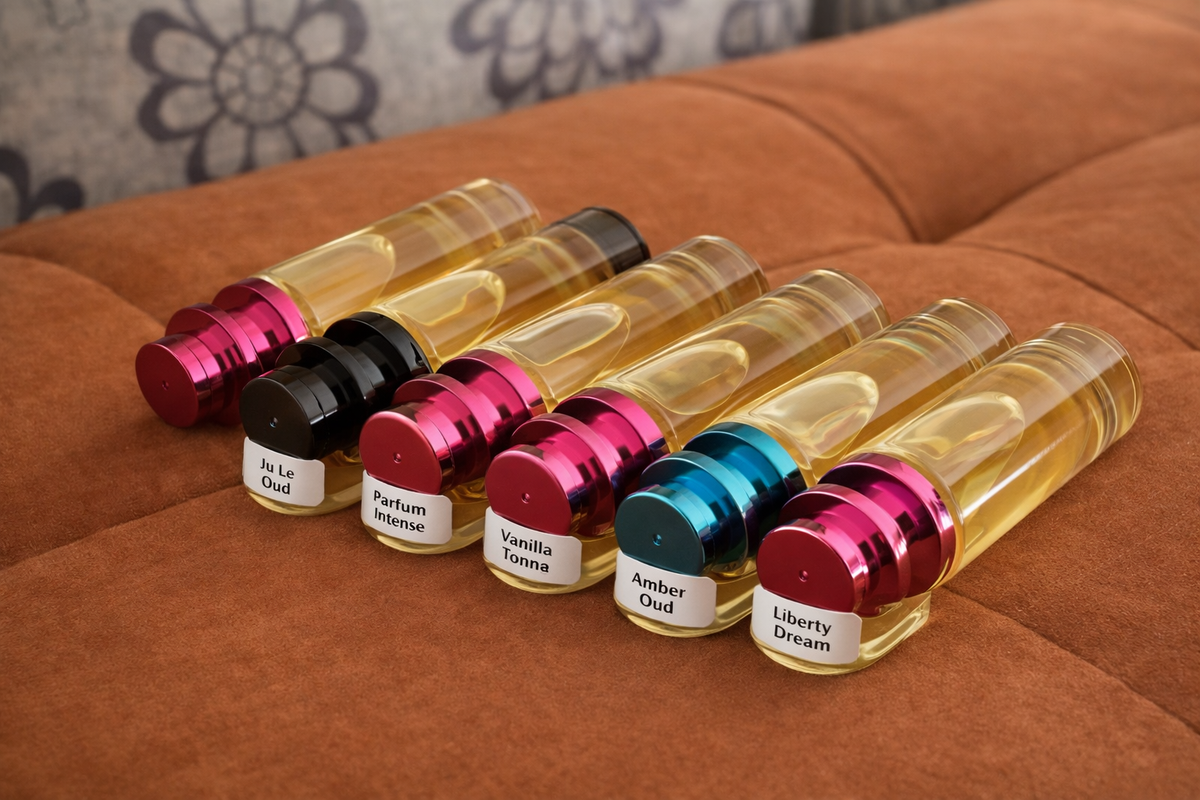 Découvrez notre ensemble de parfums de luxe comprenant des fragrances uniques comme Vanille Tonka et Ambre Oud. Parfait pour toutes les occasions, cet assortiment séduisant ravira vos sens. Idéal comme cadeau ou pour se faire plaisir, ces parfums offrent une expérience olfactive inoubliable.
