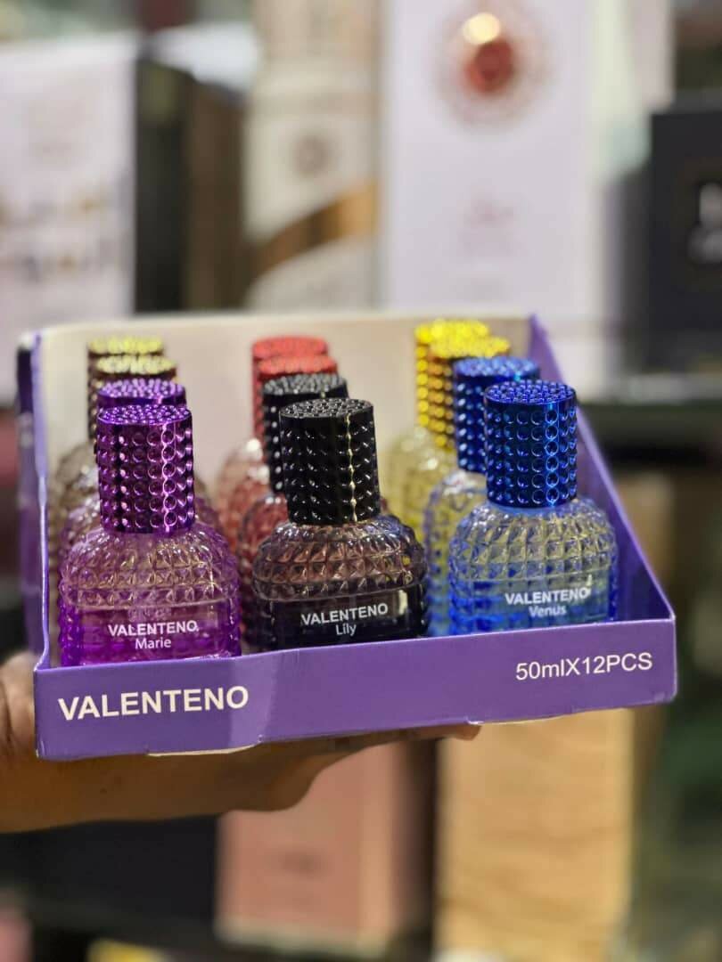 Découvrez l'élégance avec l'ensemble de parfums Valenteno. Assorti de 12 flacons de 50 ml aux parfums variés, c'est le cadeau parfait pour chaque occasion. Idéal pour exprimer votre style unique.