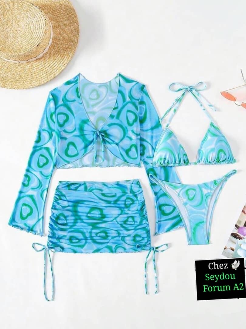 Cet ensemble de plage bohème pour femme inclut un haut, un bikini et une jupe. Parfait pour une journée ensoleillée à la plage. Léger et élégant, idéal pour se détendre au bord de la mer.