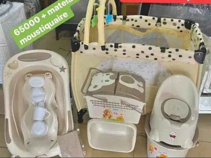 Découvrez cet ensemble de puériculture complet idéal pour nouveaux parents. Comprend un matelas, moustiquaire, baignoire bébé avec accessoires, et pot. Disponible en plusieurs couleurs attrayantes. Parfait pour assurer confort et sécurité à votre bébé. Un choix pratique pour la chambre de bébé.