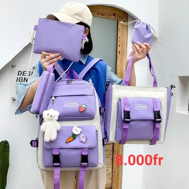 Un ensemble tendance pour les étudiants : sac à dos spacieux avec accessoires assortis. Parfait pour l'école ou les sorties.