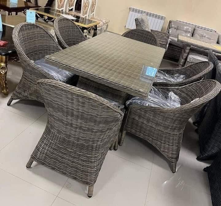 Profitez de repas en plein air avec cet ensemble salle à manger en rotin. Idéal pour votre terrasse ou jardin, il offre confort et élégance avec ses coussins moelleux et son design moderne. Parfait pour les réunions conviviales.