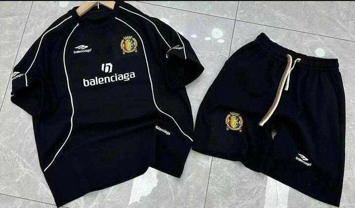 Ensemble de sport noir Balenciaga, idéal pour l'entraînement ou le quotidien. Confortable, moderne et stylé!