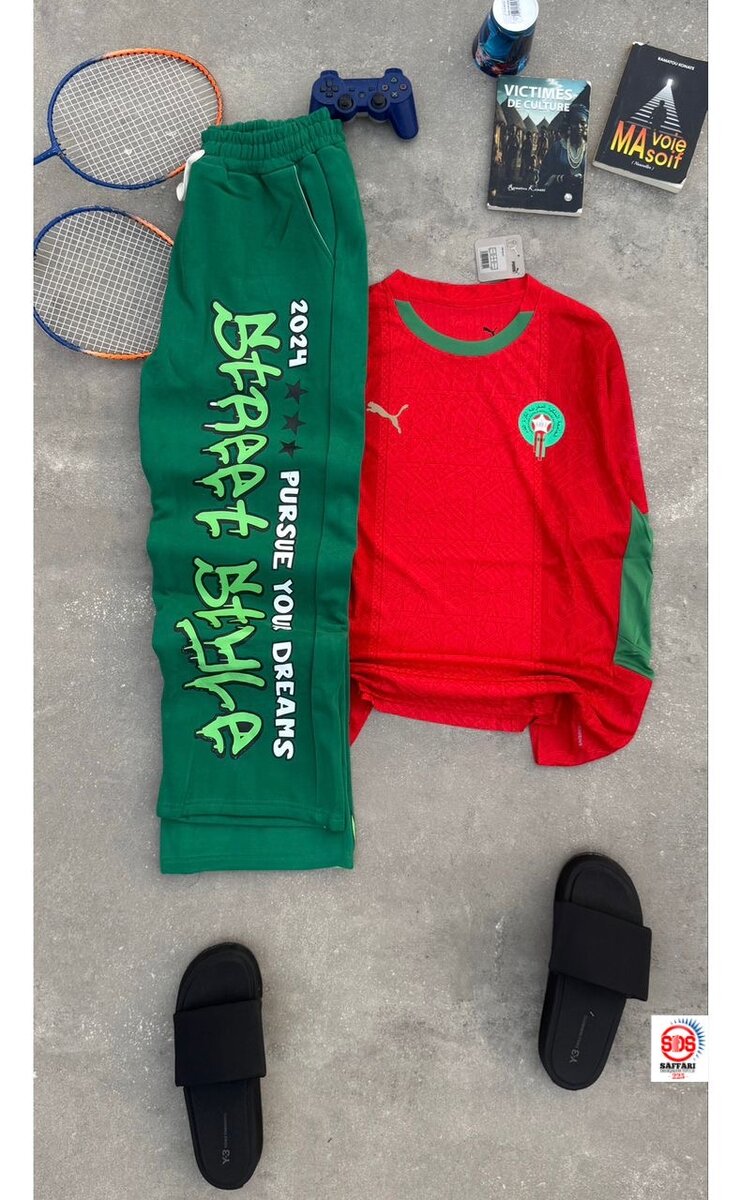 Découvrez cet ensemble de sport décontracté idéal pour les passionnés de confort et de style. Composé d'un sweat rouge avec logo et d'un pantalon vert avec une citation inspirante, il est parfait pour vos activités sportives ou vos moments de détente. Les matériaux de qualité assurent confort et durabilité. Idéal pour les amateurs de sport, en particulier les fans de badminton et de jeux vidéo.