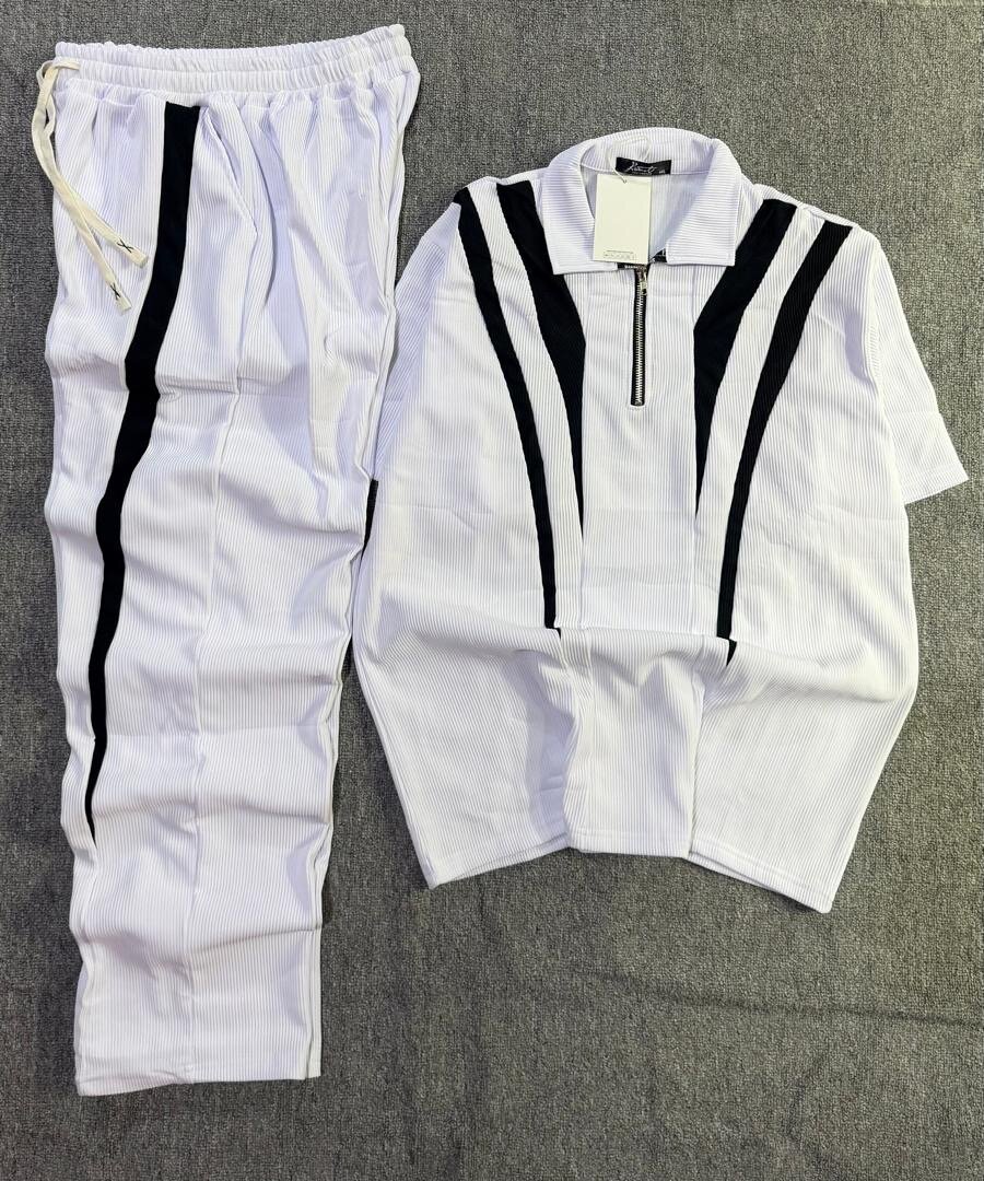 Optez pour cet ensemble de sport blanc et noir, parfait pour un look décontracté. Le tissu léger assure confort et liberté de mouvement, idéal pour vos séances de sport ou vos sorties détente. Un design moderne avec des lignes contrastées pour un style unique.