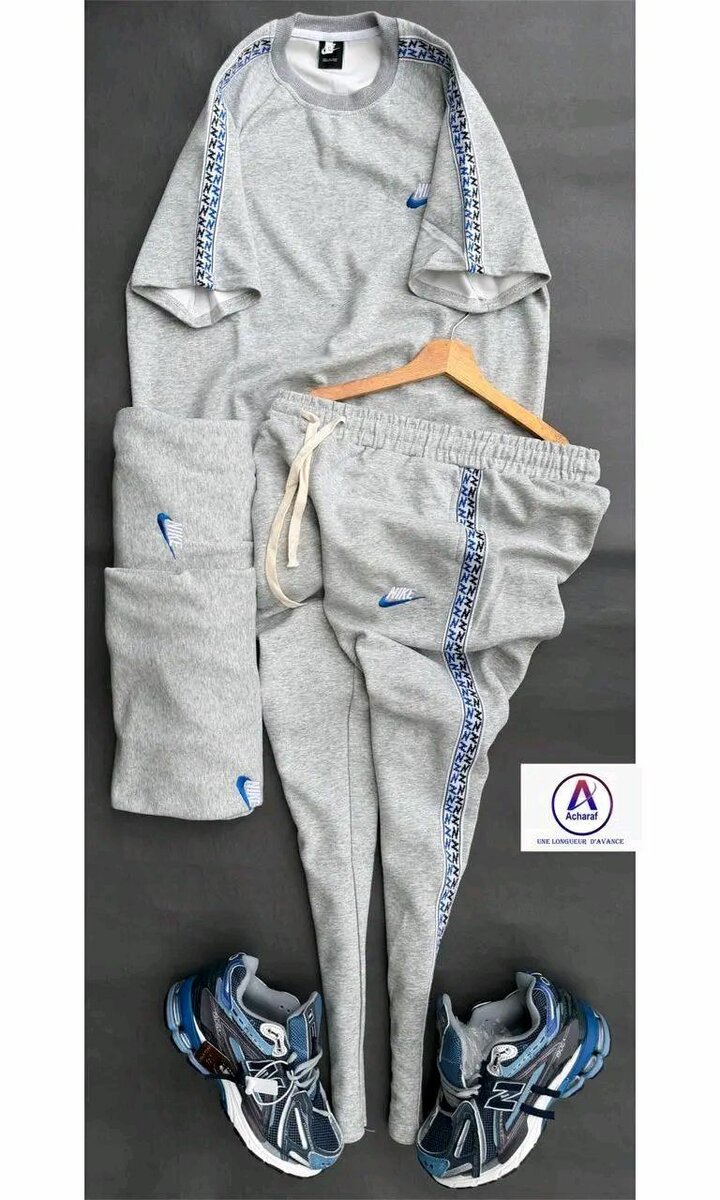 Découvrez cet ensemble de sport Nike gris, parfait pour vos entraînements ou une allure décontractée. Confortable et élégant, il comprend un t-shirt et un pantalon assortis, idéal pour le sport ou la détente. Fabriqué avec des matériaux de qualité, cet ensemble procure une grande liberté de mouvement. Idéal pour ceux qui cherchent style et performance.