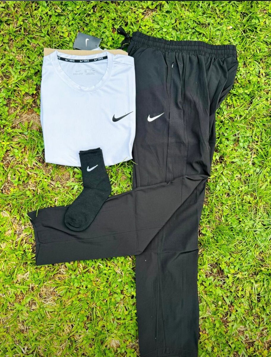Optez pour le confort et la performance avec cet ensemble de sport Nike, idéal pour vos entraînements. Comprend un t-shirt, pantalon et chaussettes, alliant style et fonctionnalité. Parfait pour le fitness et le running.