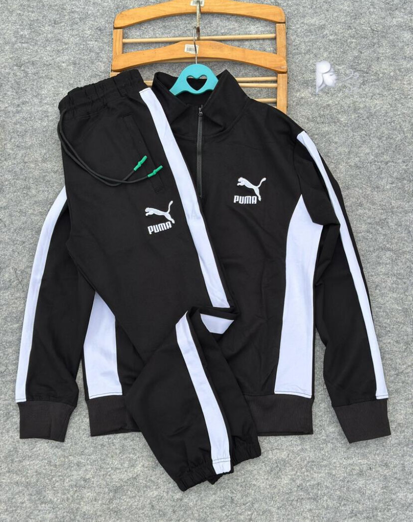 Ensemble de sport Puma pour homme, confortable et stylé, idéal pour l'entraînement et les loisirs. Fabriqué en matériaux respirants avec logo distinctif. Parfait pour les activités sportives et détente.