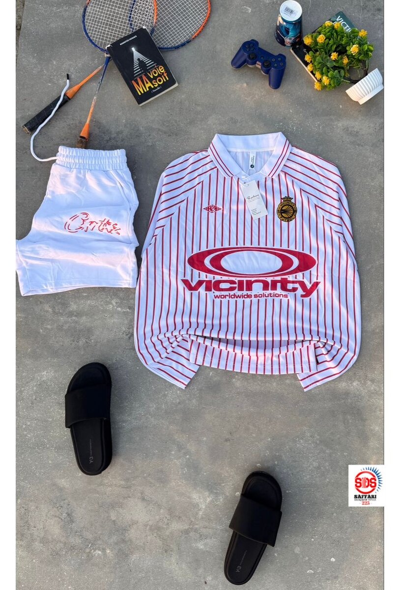 Optez pour cet ensemble sportif à rayures, idéal pour vos sessions de fitness ou vos sorties décontractées. Son design moderne et confortable est parfait pour l'homme actif. Fabriqué avec des matériaux de qualité, cet ensemble garantit style et confort à chaque mouvement. Complétez votre look sportif et tendance dès maintenant!