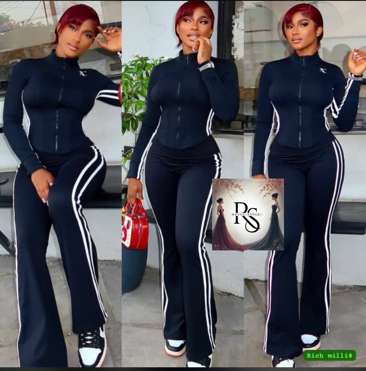 Découvrez cet ensemble de sport noir avec des lignes blanches. Parfait pour le confort et le style, idéal pour vos séances d'entraînement ou vos sorties décontractées. Fabriqué avec des matériaux de haute qualité pour une flexibilité maximale et un ajustement parfait. Portez-le pour un look sportif et élégant.