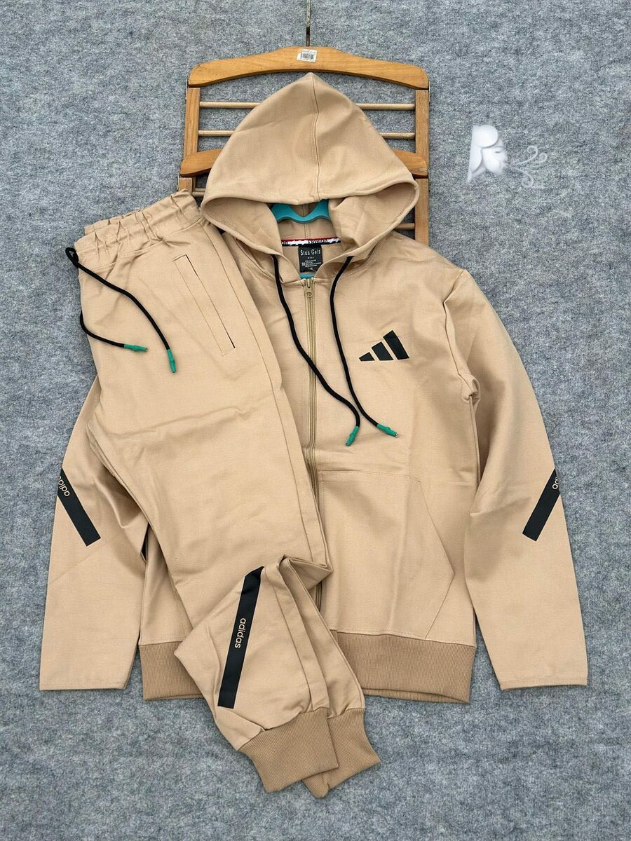 Découvrez cet ensemble de survêtement beige élégant et confortable. Idéal pour le sport ou les sorties décontractées, il offre une coupe moderne et un tissu doux. Parfait pour un look tendance!