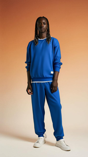 Optez pour cet ensemble de survêtement bleu en coton doux et confortable. Parfait pour un style décontracté, il est idéal pour la maison ou une promenade. Profitez de sa coupe ample pour un confort optimal tout au long de la journée.