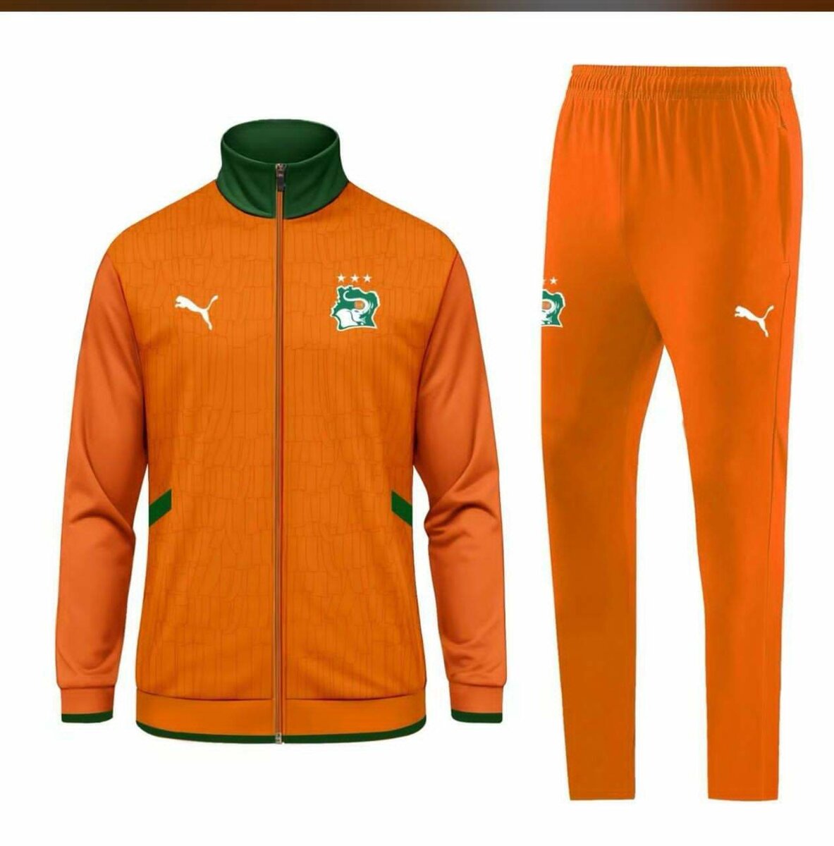 Ensemble de survêtement élégant aux couleurs de la Côte d'Ivoire. Idéal pour les fans de sport, ce modèle offre confort et style grâce à sa confection de qualité. Parfait pour le sport ou les événements décontractés.