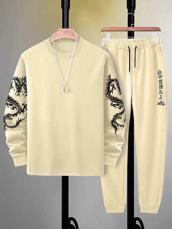 Découvrez le confort et le style de cet ensemble de survêtement beige avec motif dragon. Fabriqué pour les amateurs de streetwear, il allie style unique et confort optimal, idéal pour le quotidien ou les loisirs.
