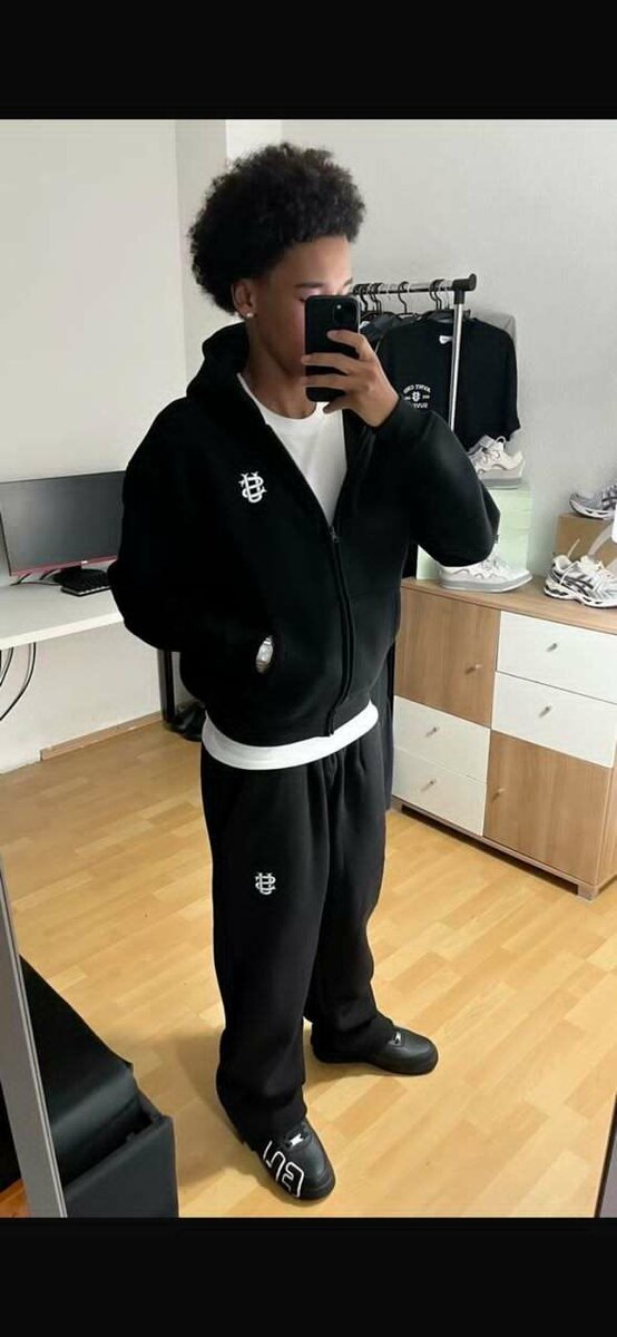 Optez pour le confort et le style avec cet ensemble de survêtement noir. Parfait pour un look décontracté, il est idéal pour le sport ou les sorties en ville. Disponible en toutes tailles!
