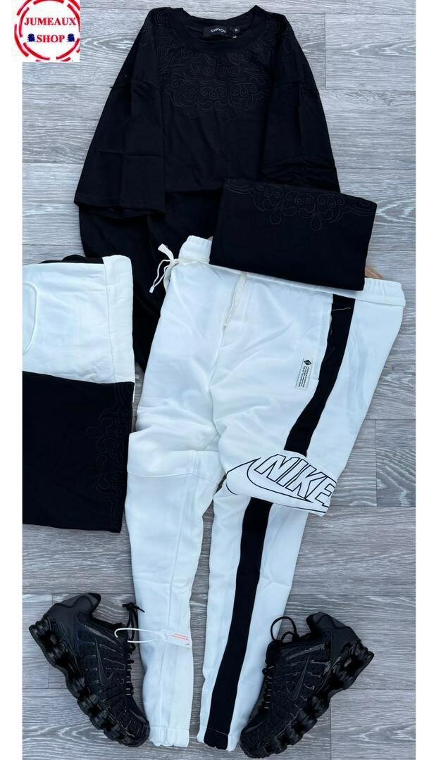 Découvrez cet ensemble de survêtement pour hommes, parfait pour le sport et les loisirs. Composé d'un sweat noir et d'un pantalon de jogging confortable, il offre un style moderne et décontracté. Disponible en deux options de couleur : gris avec logo Puma ou blanc avec logo Nike. Ce set est idéal pour la salle de gym ou une journée relax.
