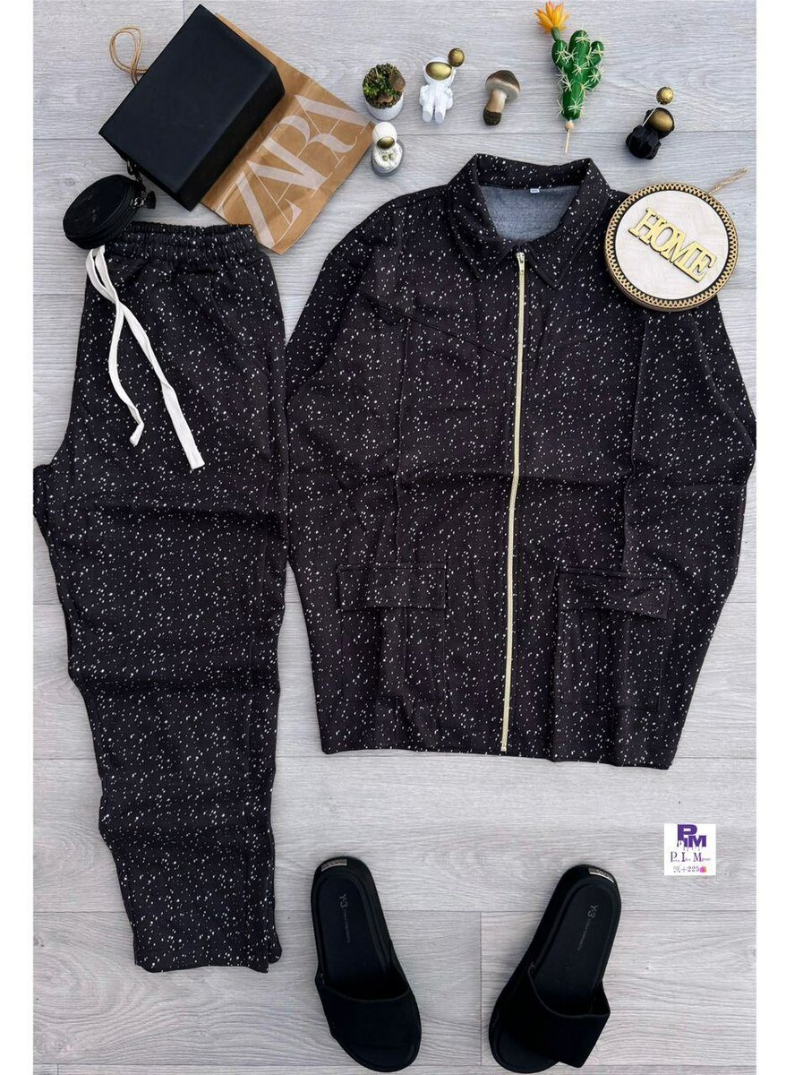 Confort et style avec cet ensemble de survêtement noir à motif. Parfait pour la détente ou une sortie décontractée. Tissu doux, taille élastique et design tendance.