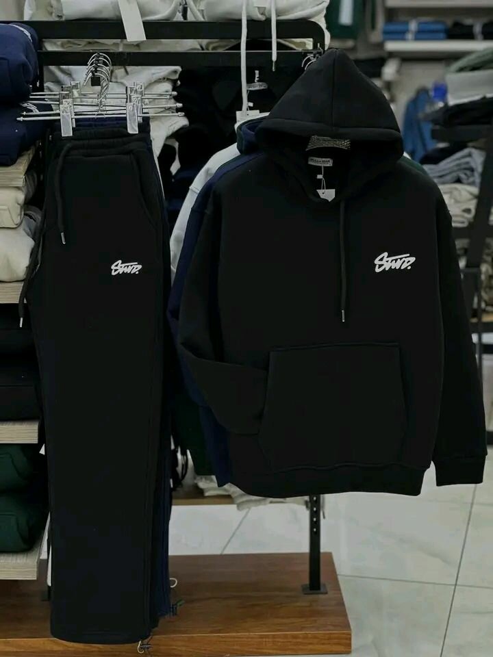 Cet ensemble de survêtement noir est parfait pour un look décontracté et stylé. Fabriqué en tissu doux et confortable, il comprend un sweat à capuche avec une poche kangourou et un pantalon assorti. Idéal pour le sport ou les sorties quotidiennes, ce set offre confort et style en toute occasion.