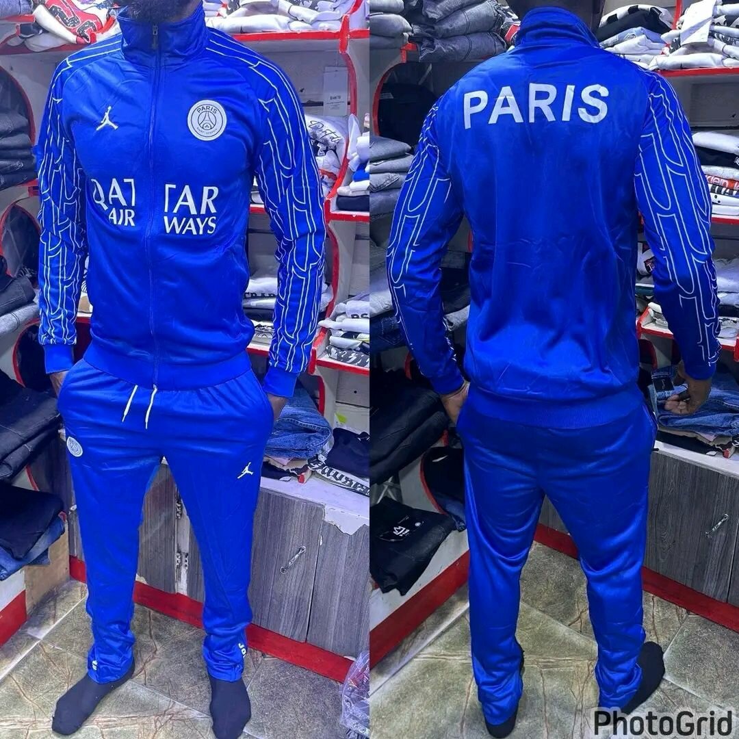 Ensemble de survêtement bleu "Paris" parfait pour les fans de foot. Confortable et stylé, idéal pour le sport ou les sorties décontractées. Faites de chaque moment un match avec style.