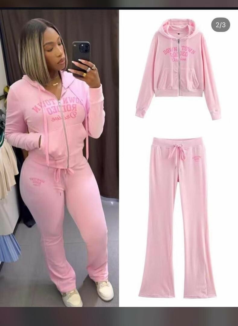 Optez pour un confort ultime avec cet ensemble de survêtement rose doux et élégant. Idéal pour les journées de détente ou une sortie sportive. Comprend une veste à capuche zippée et un pantalon ajusté avec cordon de serrage.