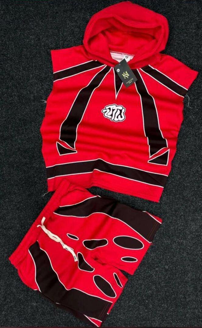 Soyez audacieux avec cet ensemble de survêtement rouge vibrant, comprenant un haut à capuche et un short assorti. Idéal pour le sport ou une journée décontractée, ce set garantit confort et style.