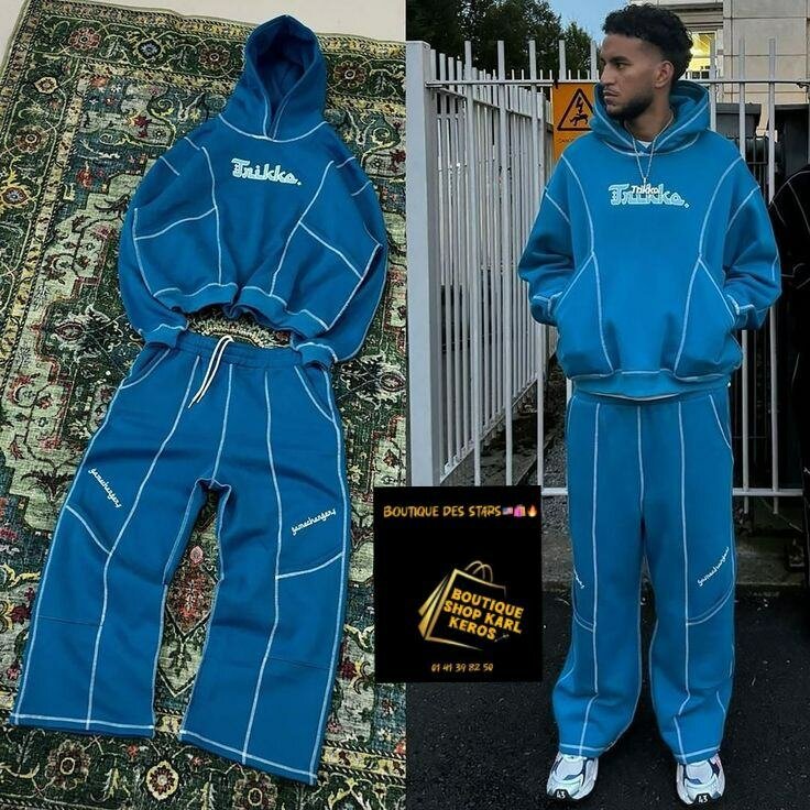 Adoptez un style décontracté avec cet ensemble de survêtement moderne. Parfait pour un look streetwear, cet ensemble offre confort et chic. Idéal pour le sport ou les sorties en ville. Fabriqué avec des matériaux de qualité pour un confort optimal.