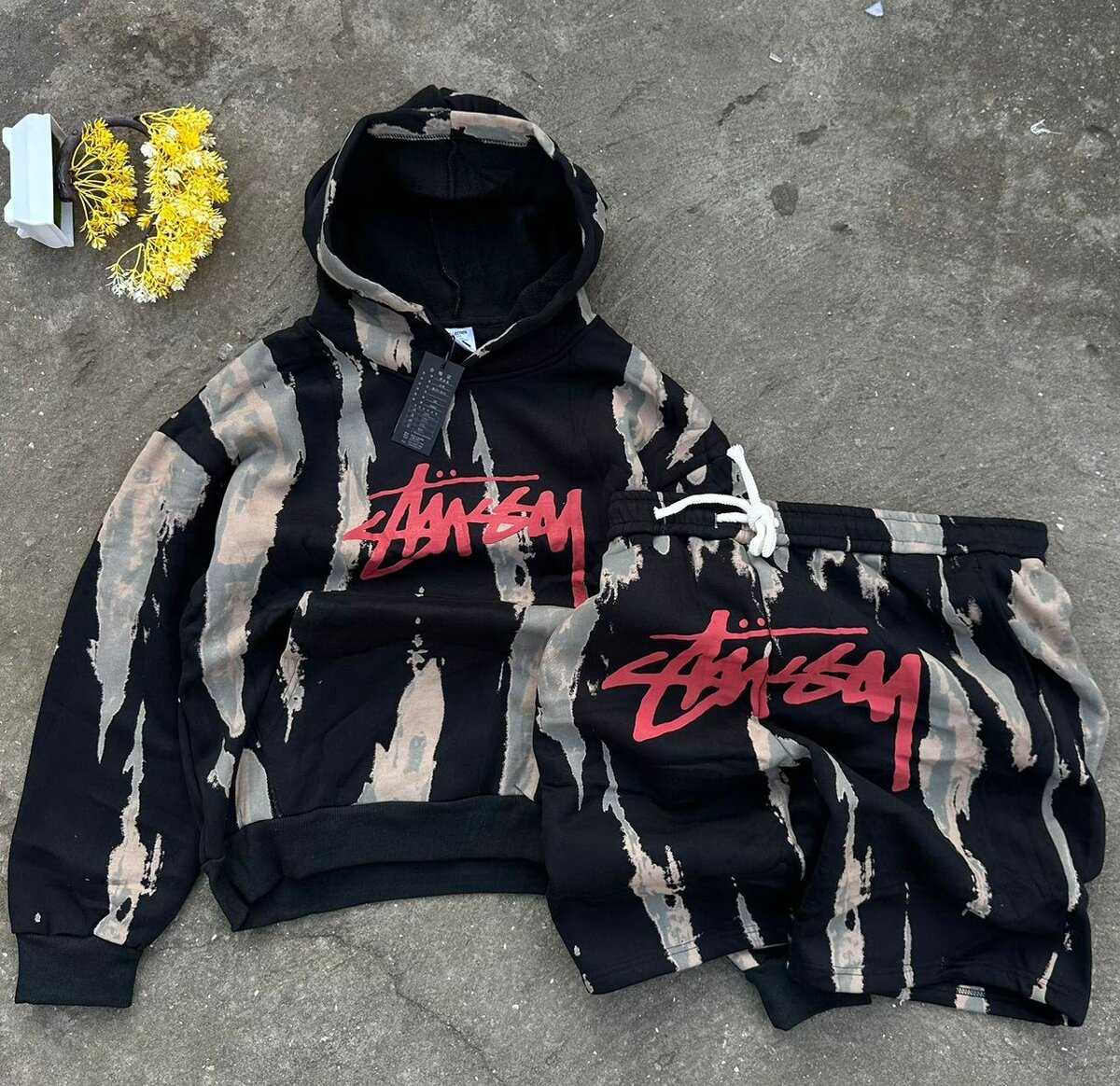 Découvrez cet ensemble de survêtement moderne avec un motif unique et un design urbain. Parfait pour le streetwear, il offre confort et style grâce à sa coupe décontractée et son tissu de qualité. Idéal pour un look décontracté au quotidien ou pour une sortie entre amis.