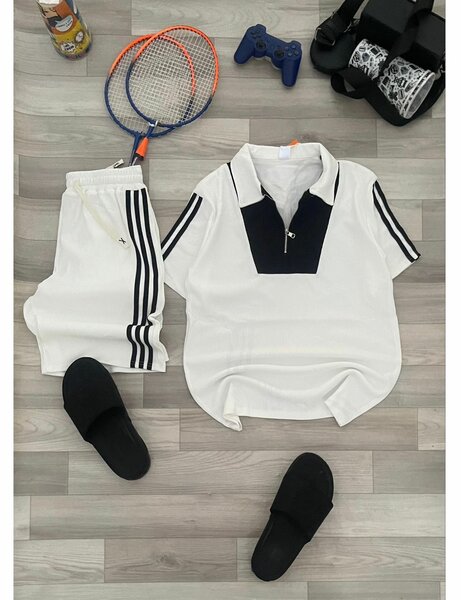 Découvrez l'ensemble de tennis décontracté, parfait pour les journées actives. Ce set inclut une chemise légère et un short à rayures avec fermeture éclair stylée pour un look sportif et tendance. Idéal pour les fans de tennis cherchant confort et style sur le court et au quotidien.